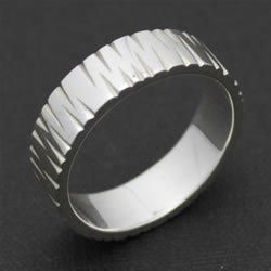 シンプルなリングを一点制作しました。シンプルなリングをベースに表面にヒビ割れの様なテクスチャーを削り込みました。