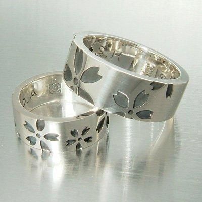 桜の文様をペアでそれぞれアレンジしたペアリング