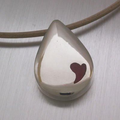 ドロップ型ペンダントにハートの樹脂を埋め込んだ一点物