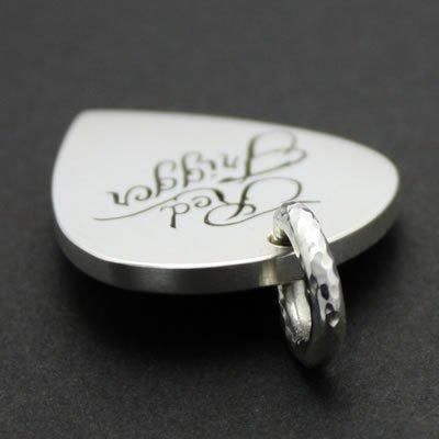 ベーシストへのプレゼントでティアドロップ型より三角形かなとの思いましたがペンダントとしてはこちらの方がしっくりくると思いこの形を採用しました。