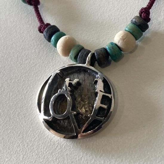 「LOVE」を円の中にロゴデザインと告白の場面を切り取ったシルエットを絵本の一コマの様な雰囲気にデザインしたペンダントです。